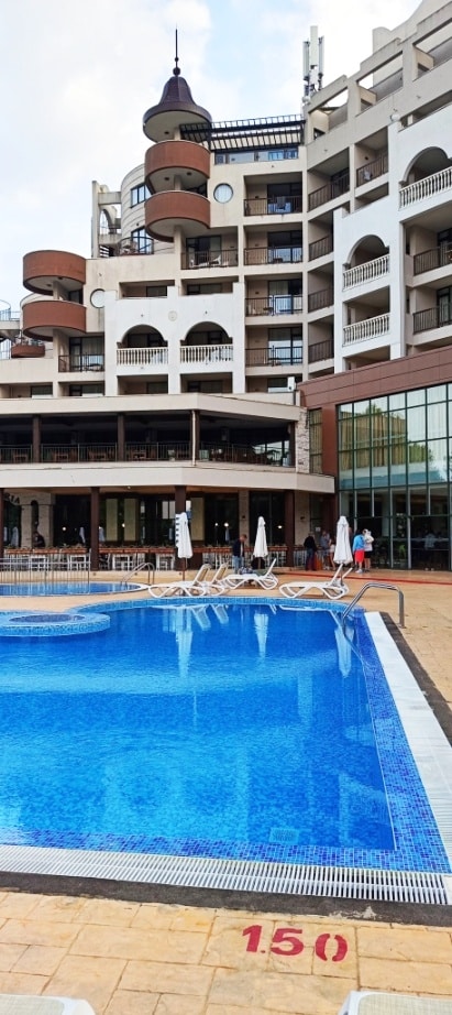 Hotel Imperial Resort ma bowiem 3 budynki. I dwa pozostałe reprezentacyjne raczej nie są. Więc nastawiając się na mieszkanie w tym, co widzisz na zdjęciach i szukając opinii o hotelu oraz dokumentacji zdjęciowej (czyli wpisując „imperial resort słoneczny brzeg” do wyszukiwarki grafik Google) niekoniecznie zobaczysz budynek, w którym możesz realnie zamieszkać: