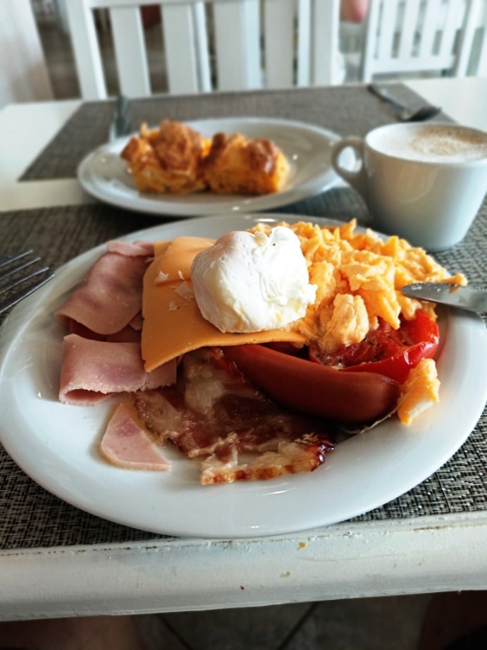 Jak karmią w hotelu z grupy HI Hotels? Zacznę od informacji praktycznych – lepiej nie przychodzić na posiłki w godzinach rozpoczęcia karmienia. Jest wówczas dziko. Wyspiarze przebierają nogami w blokach startowych, aby wystartować po swoje fish & chips. Są przy tym dość nerwowi, szczególnie ci z większym BMI. A więc jakaś 1/3 turystów. Zdecydowanie lepiej przyjść pół godziny po otwarciu restauracji, aby zjeść w kulturalnych warunkach bez dzikich pochrumkiwań po angielsku.