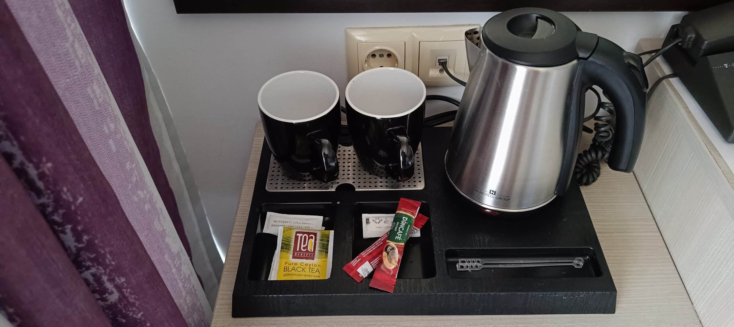 Zestaw do parzenia kawy i herbaty w hotelu HI HOTELS Group w Słonecznym Brzegu
